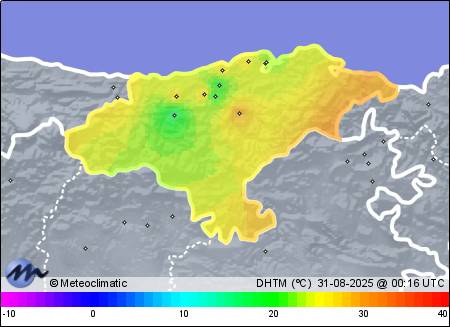 | 30-08-2025 | | | Máx. | Mín. | | | Temperatura | 25,6 | 14,9 | °C | | Humedad | 100 | 66 | % | | Viento | 31 | n/a | km/h | | Presión | 1.016 | 1.013 | hPa | | Precipitación | 0,0 | mm |