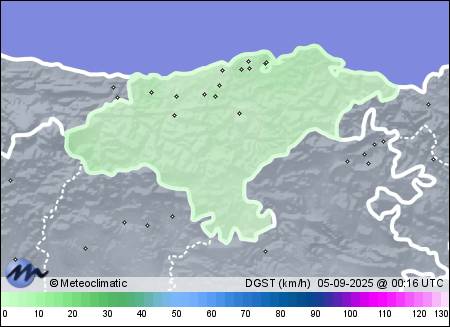 | 04-09-2025 | | | Máx. | Mín. | | | Temperatura | 21,5 | 16,6 | °C | | Humedad | 94 | 63 | % | | Viento | 40 | n/a | km/h | | Presión | 1.024 | 1.017 | hPa | | Precipitación | 0,0 | mm |