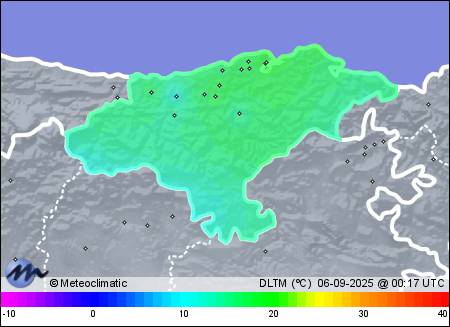 | 05-09-2025 | | | Máx. | Mín. | | | Temperatura | 22,5 | 16,4 | °C | | Humedad | 92 | 71 | % | | Viento | 35 | n/a | km/h | | Presión | 1.025 | 1.016 | hPa | | Precipitación | 0,0 | mm |