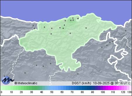 | 09-09-2025 | | | Máx. | Mín. | | | Temperatura | 20,1 | 13,2 | °C | | Humedad | 94 | 70 | % | | Viento | 24 | n/a | km/h | | Presión | 1.022 | 1.016 | hPa | | Precipitación | 0,0 | mm |