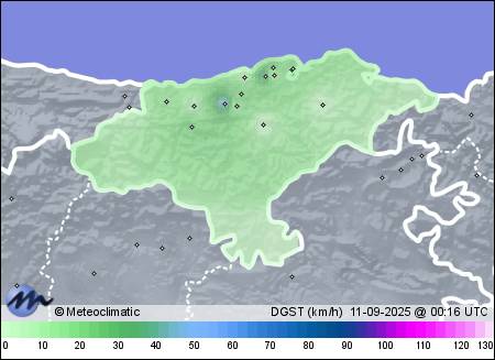 | 10-09-2025 | | | Máx. | Mín. | | | Temperatura | 22,4 | 15,5 | °C | | Humedad | 100 | 89 | % | | Viento | 47 | n/a | km/h | | Presión | 1.018 | 1.011 | hPa | | Precipitación | 0,4 | mm |
