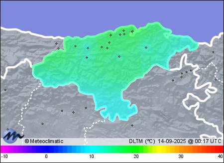 | 13-09-2025 | | | Máx. | Mín. | | | Temperatura | 22,3 | 15,7 | °C | | Humedad | 87 | 53 | % | | Viento | 17 | n/a | km/h | | Presión | 1.023 | 1.020 | hPa | | Precipitación | 0,0 | mm |