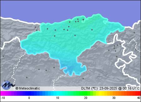 | 22-09-2025 | | | Máx. | Mín. | | | Temperatura | 17,0 | 11,9 | °C | | Humedad | 97 | 79 | % | | Viento | 40 | n/a | km/h | | Presión | 1.023 | 1.018 | hPa | | Precipitación | 95,3 | mm |