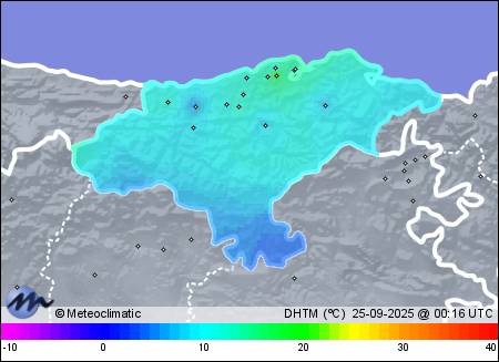 | 24-09-2025 | | | Máx. | Mín. | | | Temperatura | 18,9 | 9,9 | °C | | Humedad | 100 | 61 | % | | Viento | 16 | n/a | km/h | | Presión | 1.025 | 1.023 | hPa | | Precipitación | 10,4 | mm |