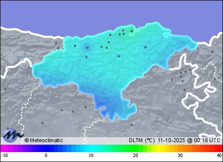 10-10-2025 | | Máx. | Mín. | | Temperatura | 18,7 | 11,4 | °C | Humedad | 100 | 79 | % | Viento | 27 | n/a | km/h | Presión | 1.030 | 1.028 | hPa | Precipitación | 0,0 | mm |