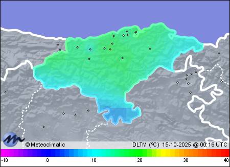 14-10-2025 | | Máx. | Mín. | | Temperatura | 19,9 | 14,3 | °C | Humedad | 96 | 83 | % | Viento | 9 | n/a | km/h | Presión | 1.023 | 1.020 | hPa | Precipitación | 0,0 | mm |