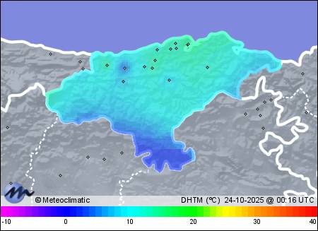 | 23-10-2025 | | | Máx. | Mín. | | | Temperatura | 19,8 | 8,6 | °C | | Humedad | 99 | 51 | % | | Viento | 40 | n/a | km/h | | Presión | 1.018 | 1.006 | hPa | | Precipitación | 0,0 | mm |