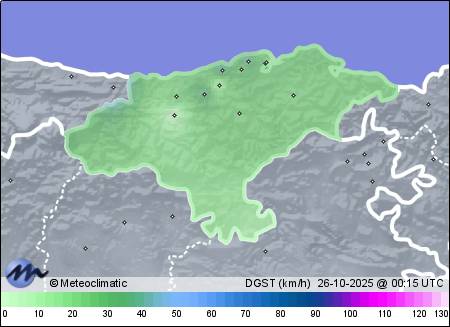 | 25-10-2025 | | | Máx. | Mín. | | | Temperatura | 17,0 | 12,1 | °C | | Humedad | 96 | 72 | % | | Viento | 39 | n/a | km/h | | Presión | 1.022 | 1.015 | hPa | | Precipitación | 7,8 | mm |