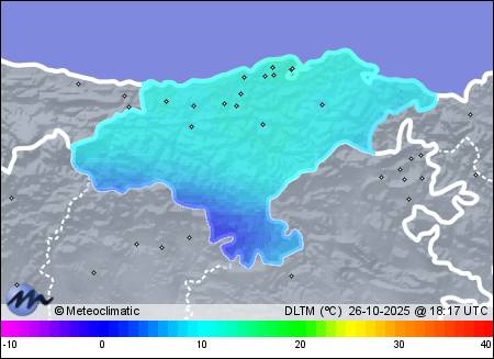 | Actualizado: 14:58 UTC | 12,1°C 88% | 13,0 °C / 99% | | 8,4°C / 77% | | 1 km/h W | | 18 km/h | | 1.024 hPa | | 3,3 mm |