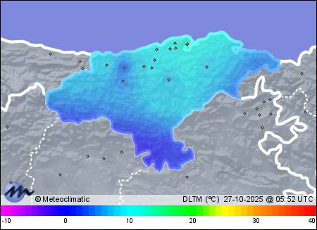 | Actualizado: 02:57 UTC | 4,3°C 91% | 6,2 °C / 92% | | 4,3°C / 88% | | Calma | | 4 km/h | | 1.028 hPa |