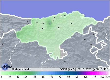| Actualizado: 19:20 UTC | 9,9°C 91% | 15,0 °C / 95% | | 6,7°C / 75% | | Calma | | 32 km/h | | 1.010 hPa | | 2,4 mm |