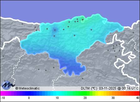 | 02-11-2025 | | | Máx. | Mín. | | | Temperatura | 17,8 | 9,6 | °C | | Humedad | 97 | 65 | % | | Viento | 26 | n/a | km/h | | Presión | 1.026 | 1.019 | hPa | | Precipitación | 0,0 | mm |