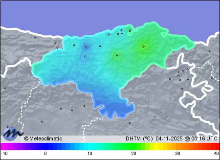 | 03-11-2025 | | | Máx. | Mín. | | | Temperatura | 18,2 | 8,9 | °C | | Humedad | 95 | 64 | % | | Viento | 17 | n/a | km/h | | Presión | 1.026 | 1.017 | hPa | | Precipitación | 0,0 | mm |
