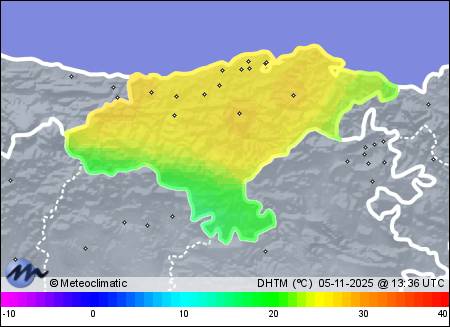 | Actualizado: 06:29 UTC | 10,0°C 90% | 12,8 °C / 90% |  | | 8,9°C / 77% | | 1.010 hPa |
