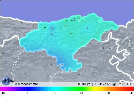 | Actualizado: 02:13 UTC | 10,5°C 89% | 11,2 °C / 92% | | 9,7°C / 88% | | Calma | | 4 km/h | | 1.015 hPa |