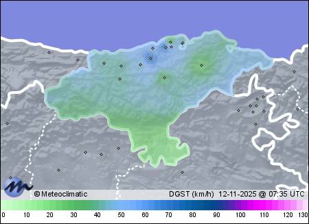 | Actualizado: 06:28 UTC | 5,7°C 85% | 7,1 °C / 99% | | 4,4°C / 84% | | Calma | | 13 km/h |