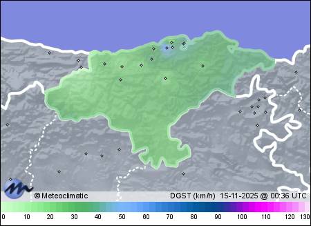 | Actualizado:14-11-2025 23:58 UTC | 9,4°C 86% | 15,9 °C / 95% | | 9,0°C / 59% | | 5 km/h SSE | | 37 km/h | | 1.007 hPa | | 11,0 mm |