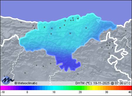 | Actualizado: 00:18 UTC | 8,6°C 90% | 8,7 °C / 90% |  | | 8,6°C / 90% | | Calma | | 3 km/h | | 1.019 hPa |