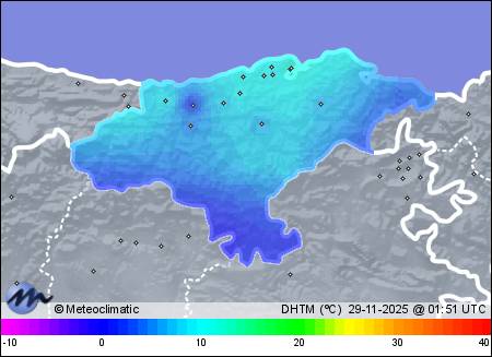 | Escarcha | | Actualizado: 00:17 UTC | -1,5°C 92% | 10,8 °C / 96% | | -3,7°C / 50% | | Calma | | 11 km/h | | 1.025 hPa |