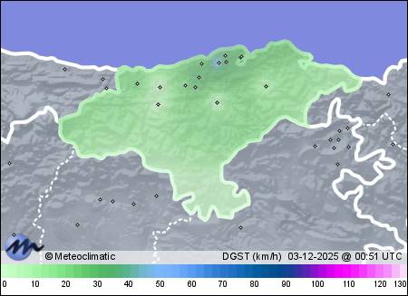 | Actualizado: 00:16 UTC | 9,4°C 85% | 9,4 °C / 93% | | 7,5°C / 85% | | 5 km/h W | | 34 km/h | | 1.014 hPa | | 0,4 mm |