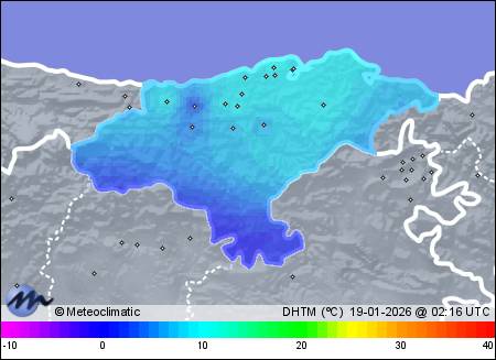 | Escarcha | | Actualizado: 00:43 UTC | 0,5°C 99% | 0,9 °C / 99% | | 0,3°C / 97% | | Calma | | 0 km/h | | 1.020 hPa |