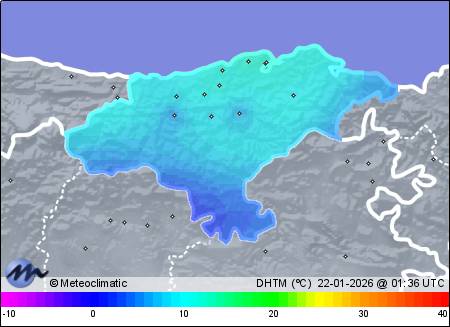 | Actualizado: 00:13 UTC | 8,4°C 84% | 8,8 °C / 87% | | 7,5°C / 78% | | Calma | | 2 km/h | | 998 hPa |