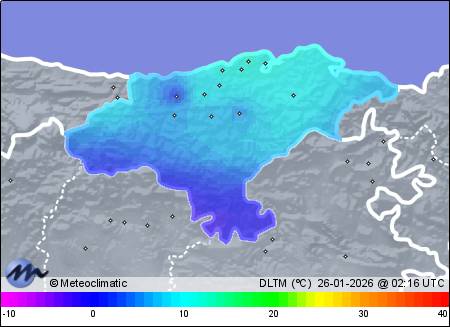 | Actualizado: 00:41 UTC | 8,7°C 78% | 10,9 °C / 78% | | 8,7°C / 71% | | Calma | | 19 km/h | | 1.008 hPa |