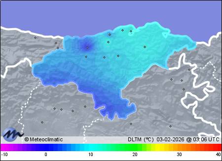 | Actualizado: 01:13 UTC | 4,6°C 85% | 4,8 °C / 86% | | 4,5°C / 83% | | 1 km/h SE | | 17 km/h | | 998 hPa |