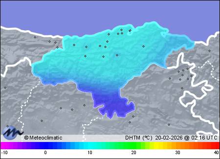 | Actualizado: 00:56 UTC | 8,8°C 78% | 9,7 °C / 85% | | 8,2°C / 76% | | Calma | | 14 km/h | | 1.030 hPa |