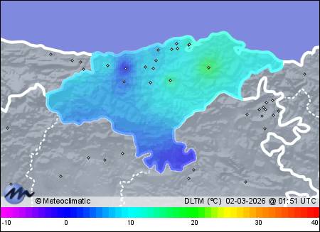 | Actualizado: 00:28 UTC | 8,8°C 70% | 8,9 °C / 72% | | 8,3°C / 69% | | 4 km/h N | | 18 km/h | | 1.015 hPa |