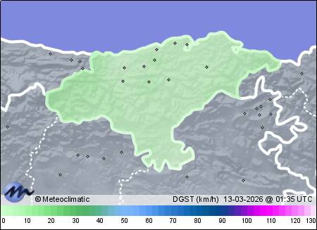 | Actualizado: 00:15 UTC | 10,1°C 90% | 10,7 °C / 91% | | 9,8°C / 88% | | 14 km/h N | | 19 km/h | | 1.021 hPa |