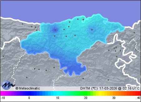 | Actualizado: 00:15 UTC | 9,0°C 92% | 9,5 °C / 92% | | 8,9°C / 91% | | 2 km/h NNE | | 6 km/h | | 1.019 hPa |