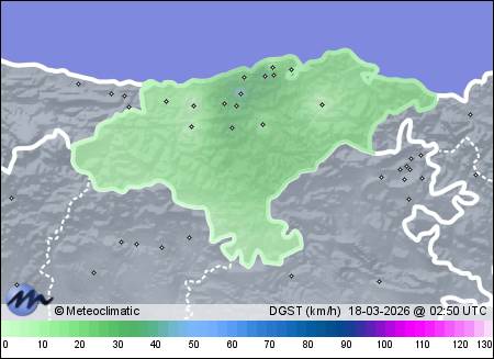 | Actualizado: 00:59 UTC | 9,3°C 74% | 11,1 °C / 74% | | 9,3°C / 69% | | 1 km/h N | | 13 km/h | | 1.012 hPa |