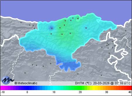 | Escarcha | | Actualizado: 00:50 UTC | 1,9°C 89% | 3,4 °C / 90% | | 1,9°C / 87% | | Calma | | 3 km/h | | 1.013 hPa |