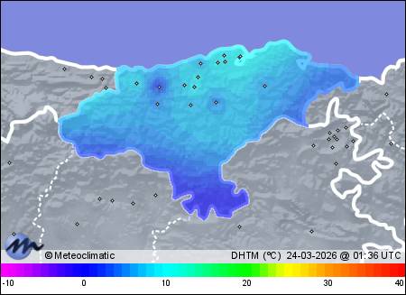 | Actualizado: 00:00 UTC | 4,9°C 81% | 4,9 °C / 81% |  | | 4,9°C / 81% | | Calma | | 0 km/h | | 1.025 hPa |
