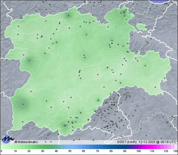 | Actualizado: 09:17 UTC | 5,5°C 92% | 6,7 °C / 93% | | 4,7°C / 88% | | 1 km/h ENE | | 16 km/h | | 1.021 hPa |