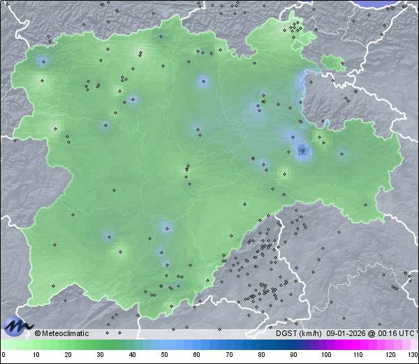 | Actualizado: 18:46 UTC | 5,0°C 80% | 9,4 °C / 97% | | 4,6°C / 58% | | 6 km/h W | | 52 km/h | | 1.025 hPa | | 0,2 mm |