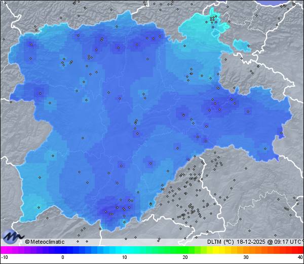 | Actualizado: 01:02 UTC | 5,2°C 85% | 6,3 °C / 85% |  | | 5,2°C / 80% | | Calma | | 9 km/h | | 1.020 hPa |