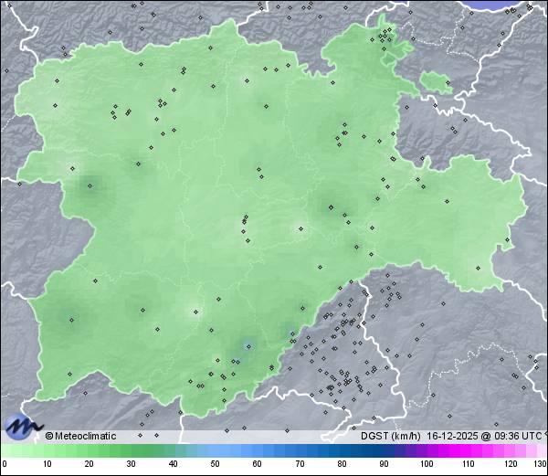 | Actualizado: 14:43 UTC | 8,7°C 83% | 8,9 °C / 97% | | 5,5°C / 82% | | 2 km/h ESE | | 16 km/h | | 1.008 hPa | | 0,3 mm |