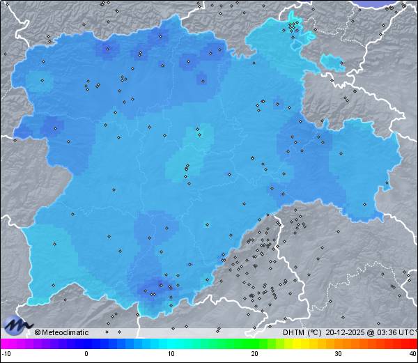 | Actualizado: 01:32 UTC | 5,7°C 92% | 5,9 °C / 92% | | 5,6°C / 91% | | Calma | | 5 km/h | | 1.019 hPa |
