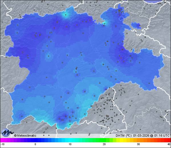 | Actualizado: 21:17 UTC | 10,4°C 71% | 17,3 °C / 93% | | 0,1°C / 52% | | Calma | | 6 km/h | | 1.019 hPa |