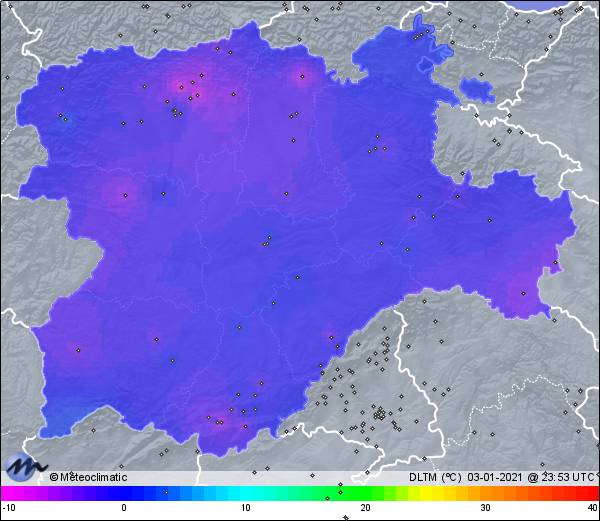 | 03-01-2021 | | | Máx. | Mín. | | | Temperatura | 3,2 | -4,1 | °C | | Humedad | 93 | 69 | % | | Viento | 33 | n/a | km/h | | Presión | 1.010 | 1.007 | hPa | | Precipitación | 0,0 | mm |