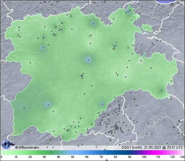 | 21-05-2021 | | | Máx. | Mín. | | | Temperatura | 19,3 | 10,1 | °C | | Humedad | 92 | 40 | % | | Viento | 30 | n/a | km/h | | Presión | 1.019 | 1.016 | hPa | | Precipitación | 0,0 | mm |