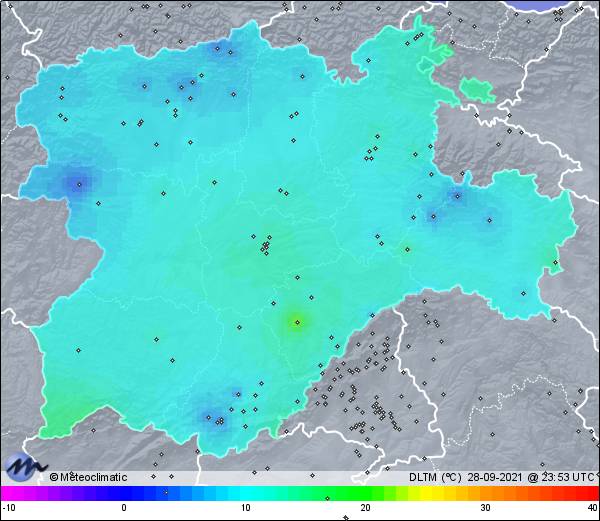 | 28-09-2021 | | | Máx. | Mín. | | | Temperatura | 19,4 | 10,2 | °C | | Humedad | 94 | 52 | % | | Viento | 32 | n/a | km/h | | Presión | 1.027 | 1.021 | hPa | | Precipitación | 0,0 | mm |