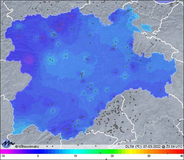| 07-03-2022 | | | Máx. | Mín. | | | Temperatura | 8,5 | -3,8 | °C | | Humedad | 96 | 48 | % | | Viento | 30 | n/a | km/h | | Presión | 1.022 | 1.015 | hPa | | Precipitación | 0,0 | mm |