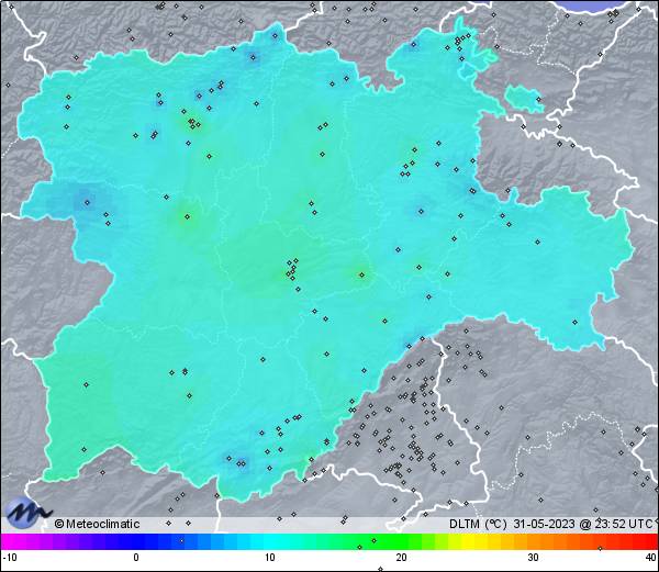 | 31-05-2023 | | | Máx. | Mín. | | | Temperatura | 24,9 | 9,6 | °C | | Humedad | 97 | 38 | % | | Viento | 20 | n/a | km/h | | Presión | 1.021 | 1.012 | hPa | | Precipitación | 15,0 | mm |