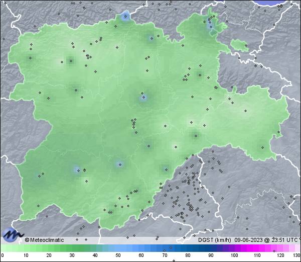 | 09-06-2023 | | | Máx. | Mín. | | | Temperatura | 19,5 | 11,3 | °C | | Humedad | 97 | 57 | % | | Viento | 35 | n/a | km/h | | Presión | 1.020 | 1.015 | hPa | | Precipitación | 9,9 | mm |