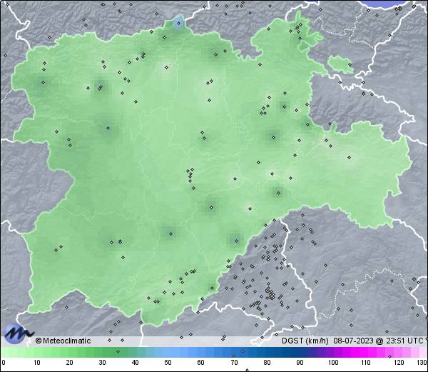 | 08-07-2023 | | | Máx. | Mín. | | | Temperatura | 27,1 | 13,9 | °C | | Humedad | x | x | % | | Viento | 34 | n/a | km/h | | Presión | x | x | hPa | | Precipitación | 0,0 | mm |