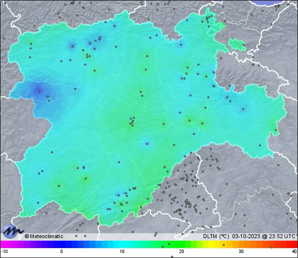 | 03-10-2023 | | | Máx. | Mín. | | | Temperatura | 27,5 | 13,0 | °C | | Humedad | 81 | 37 | % | | Viento | 24 | n/a | km/h | | Precipitación | 0,0 | mm |