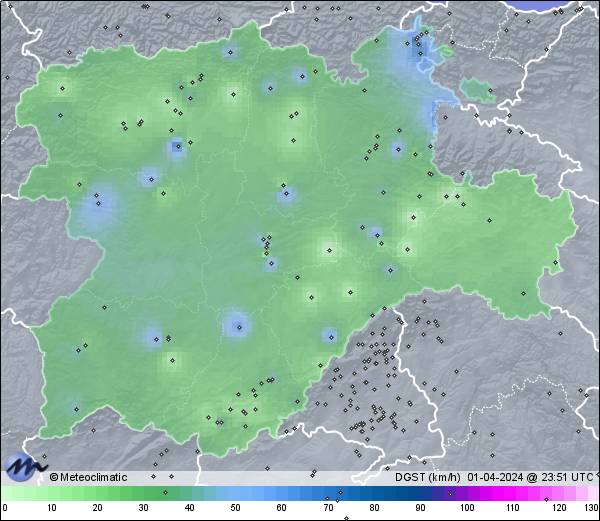 | 01-04-2024 | | | Máx. | Mín. | | | Temperatura | 9,7 | -0,5 | °C | | Humedad | 94 | 55 | % | | Viento | 39 | n/a | km/h | | Presión | 1.021 | 1.008 | hPa | | Precipitación | 1,0 | mm |
